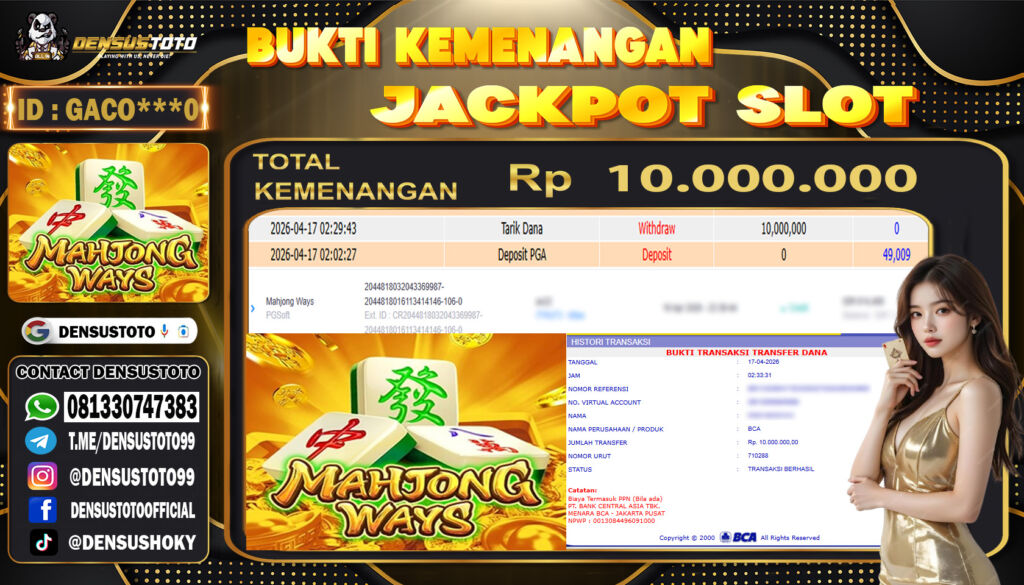 KUMPULAN BUKTI JACKPOT DENSUSTOTO MENANG BERAPAPUN