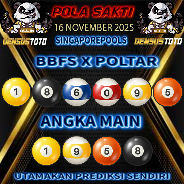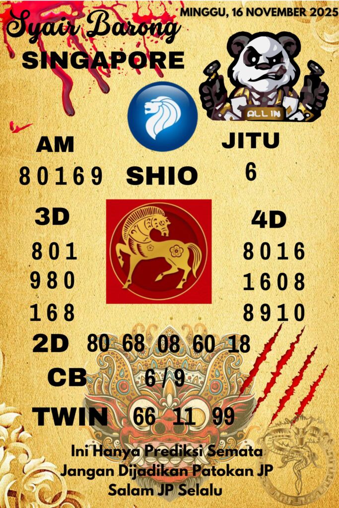 Prediksi DENSUSTOTO menyediakan Syair Togel Singapore resmi yang dapat anda saksikan dalam situs judi togel online ini. Setiap pemain judi togel online yang tidak memandang dan mengenal syair togel singapore pastilah kurang mujur buat mendapati angka keluaran togel terjitu. Lantaran itu sekarang situs judi togel online DENSUS TOTO sekarang akan memberikan anda bocoran bagaimana caranya mendapati nomor keluaran prediksi singapore dari syair togel sgp terjitu. Sekarang anda cuma perlu dan mengenal code syair singapore ini merupakan prediksi singapore yang dituang terdapat sifat code syair. Maka serius tidak bertanya-tanya jikalau sejumlah penggemar togel begitu menyintai prediksi syair togel ini. Buat prediksi syair singapore dapat dipakai buat bahan ketidaksamaan mencari angka jitu yang bisa keluar pada hari ini. Karenanya berhati-hatilah selalu pada setiap terdapat dipicu di situ dapat anda angka bermain 2D, 3D dan 4D