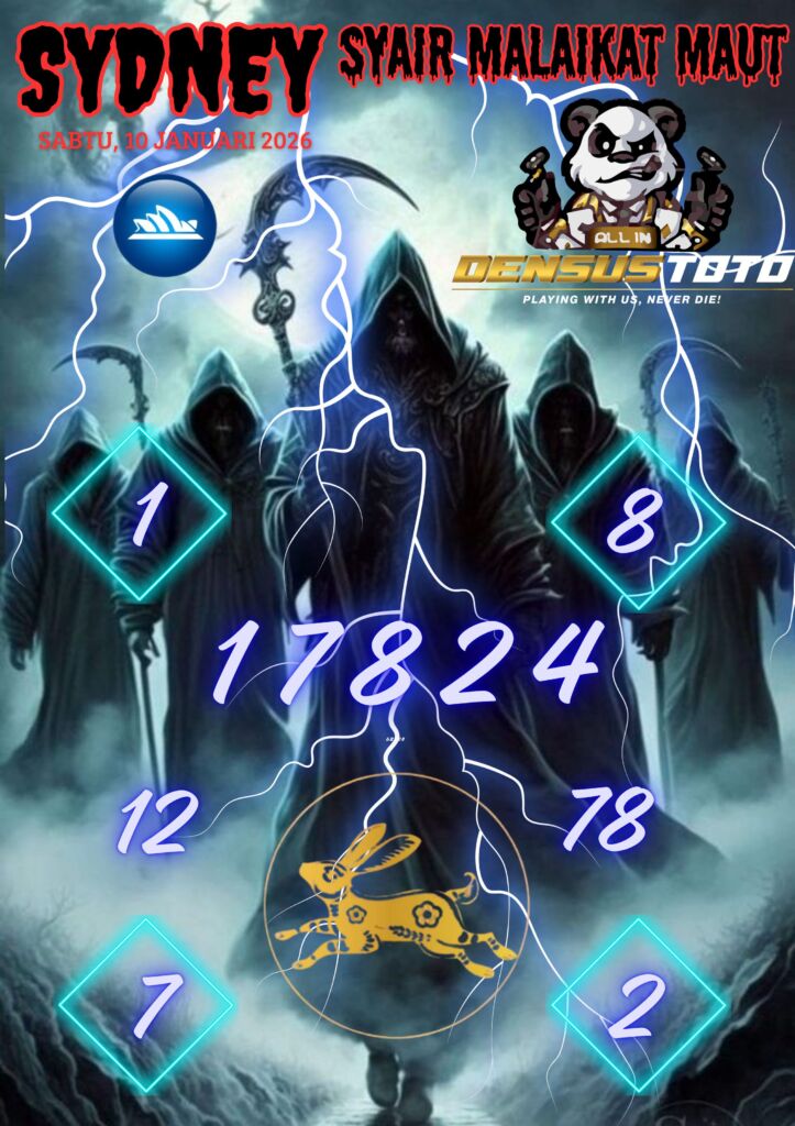 Prediksi DENSUSTOTO menyediakan Syair Togel Sydney resmi yang dapat anda saksikan dalam situs judi togel online ini. Setiap pemain judi togel online yang tidak memandang dan mengenal syair togel sydney pastilah kurang mujur buat mendapati angka keluaran togel terjitu. Lantaran itu sekarang situs judi togel online DENSUS TOTO sekarang akan memberikan anda bocoran bagaimana caranya mendapati nomor keluaran prediksi sydney dari syair togel sgp terjitu. Sekarang anda cuma perlu dan mengenal code syair sydney ini merupakan prediksi sydney yang dituang terdapat sifat code syair. Maka serius tidak bertanya-tanya jikalau sejumlah penggemar togel begitu menyintai prediksi syair togel ini. Buat prediksi syair sydney dapat dipakai buat bahan ketidaksamaan mencari angka jitu yang bisa keluar pada hari ini. Karenanya berhati-hatilah selalu pada setiap terdapat dipicu di situ dapat anda angka bermain 2D, 3D dan 4D