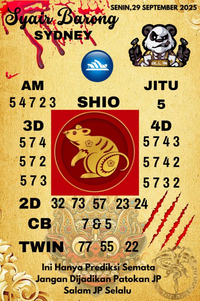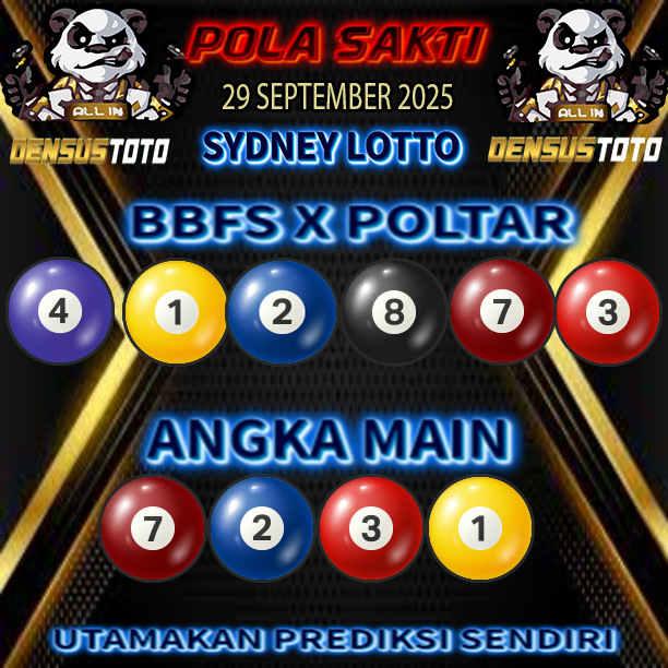 Prediksi DENSUSTOTO menyediakan Syair Togel Sydney resmi yang dapat anda saksikan dalam situs judi togel online ini. Setiap pemain judi togel online yang tidak memandang dan mengenal syair togel sydney pastilah kurang mujur buat mendapati angka keluaran togel terjitu. Lantaran itu sekarang situs judi togel online DENSUS TOTO sekarang akan memberikan anda bocoran bagaimana caranya mendapati nomor keluaran prediksi sydney dari syair togel sgp terjitu. Sekarang anda cuma perlu dan mengenal code syair sydney ini merupakan prediksi sydney yang dituang terdapat sifat code syair. Maka serius tidak bertanya-tanya jikalau sejumlah penggemar togel begitu menyintai prediksi syair togel ini. Buat prediksi syair sydney dapat dipakai buat bahan ketidaksamaan mencari angka jitu yang bisa keluar pada hari ini. Karenanya berhati-hatilah selalu pada setiap terdapat dipicu di situ dapat anda angka bermain 2D, 3D dan 4
